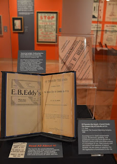 One of the most visible overlaps between libraries, archives, and museums is the use of exhibitions to display and promote library and archival holdings. There are numerous examples of archives and libraries in Toronto that put on regular exhibitions, and we chose to visit three to check out how different institutions were exhibiting their holdings: Vice & Virtue at the Toronto Reference Library (TRL), Struggle & Story: Canada in Print at the Thomas Fisher Rare Book Library, and From Streets to Playgrounds: Representing Children in Early 20th Century Toronto at the City of Toronto Archives.